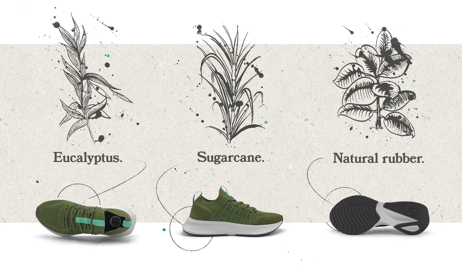 SugarcaneThe soft midsole that sits beneath your foot is made from a material called EVA. It cushions, supports and propels you forward into your next stride. Standard EVA foam is created from an oil based plastic, which unfortunately means harmful CO2 emissions that contribute to climate change, and plastic micro particles that will be here for centuries. We create a material of the finest performance, using the same process, but our EVA is made from a mix that includes sugar cane. Yes, that same sugar we like in cakes and candy. It looks a little like bamboo, and is grown sustainably using natural methods and rain water, as it absorbs C02 to be carbon negative and help tackle climate change.